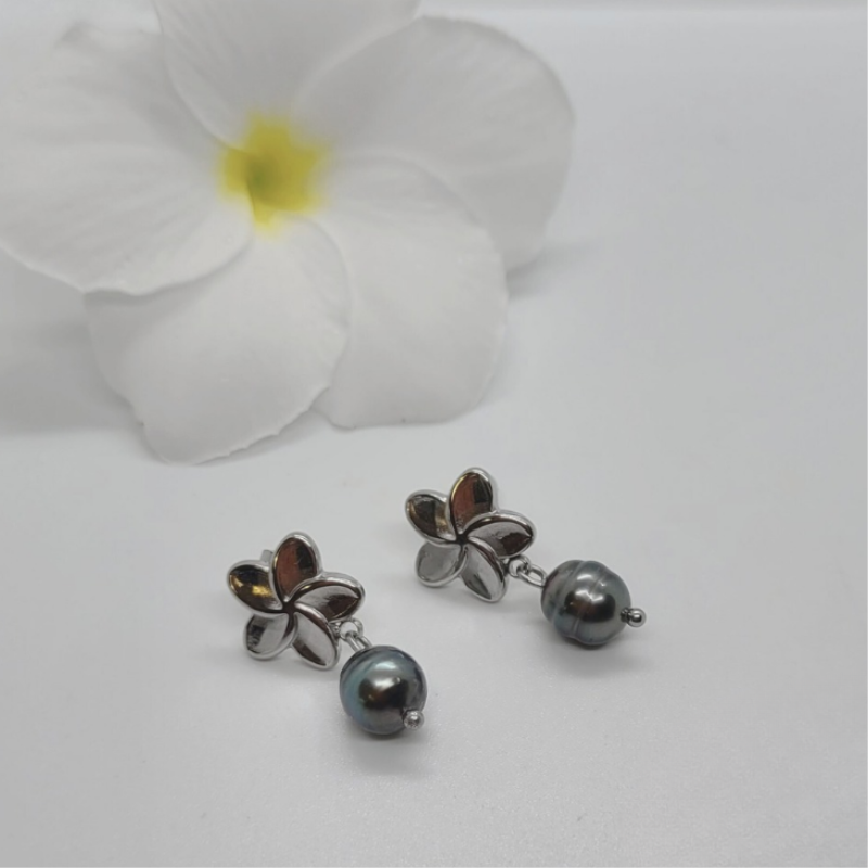 Soyez le premier à laisser votre avis sur “Boucles fleurs argentées et perles de Tahiti”