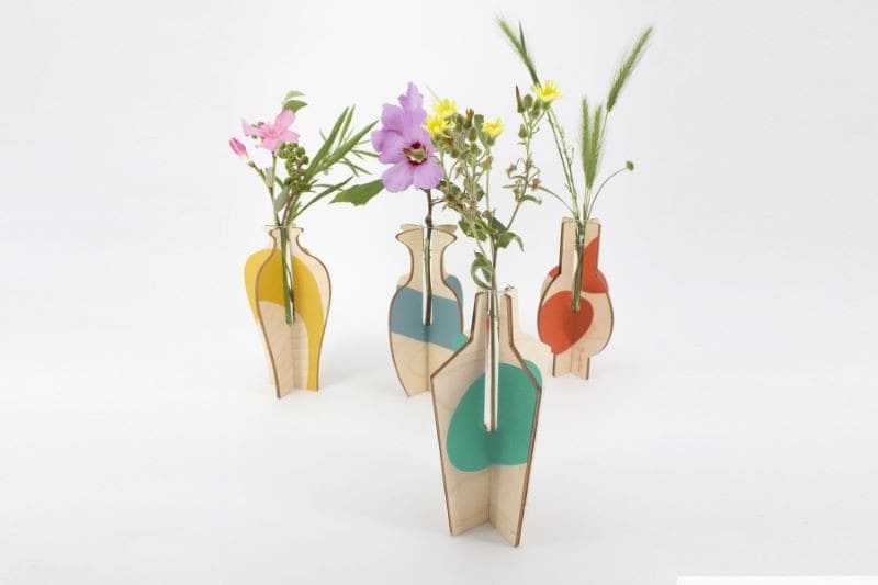 Vase en bois à assembler, design géométrique et coloré